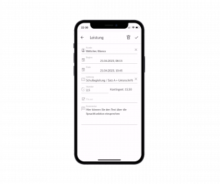 Die geplanten Termine werden einfach im persönlichem Kalender der Mitarbeiter als erledigt markiert, dazu müssen dem Termin eine Leistung hinzugefügt und gebucht werden. Die Daten stehen der Abrechnung umgehend zur Verfügung. Sie können diverse Excel-Listen durch Kilanka ersetzen und den Prozess optimieren.